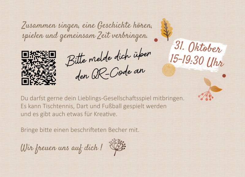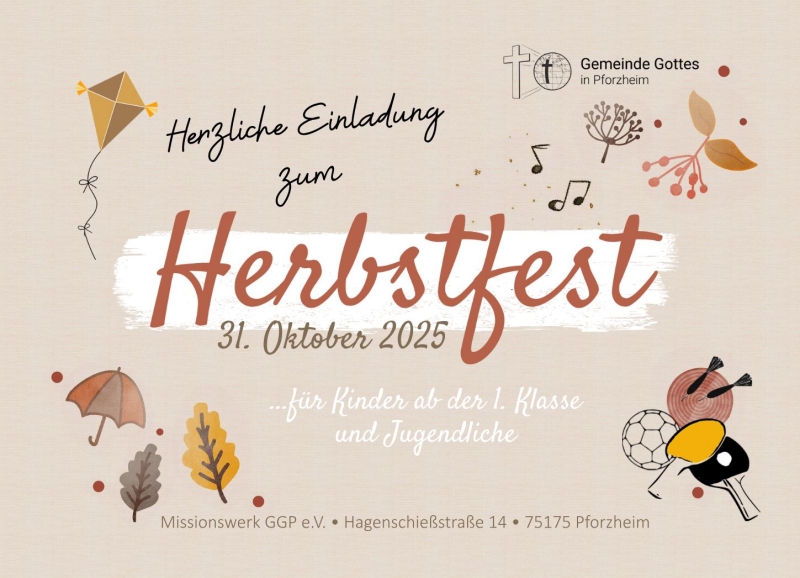 Auch dieses Jahr freuen wir uns, das wir Kinder und Jugendliche zum Herbstfest 2025 einladen dürfen.